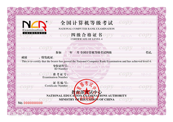 获证条件:两门课程总分达到60并分别达到 30 分及以上,并已经(或同时)获得三级相关证书。2013 年 3 月及以前获得的三级各科目证书,不区分科目,可以作为四级任一科目的获证条件。